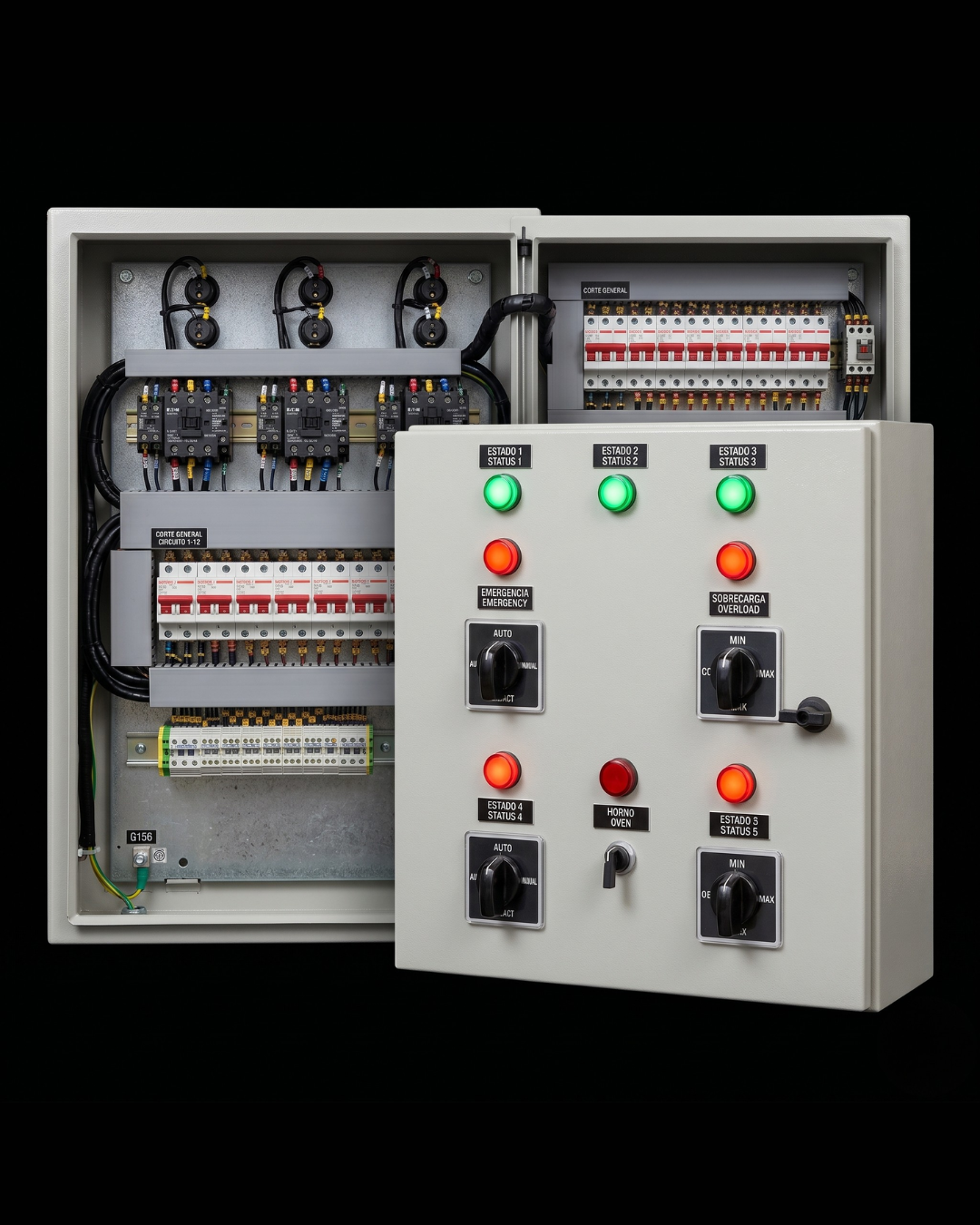 El tablero de control para cocinas eléctricas navales CN 1250 está diseñado para garantizar una operación segura, eficiente y confiable en entornos de uso intensivo.